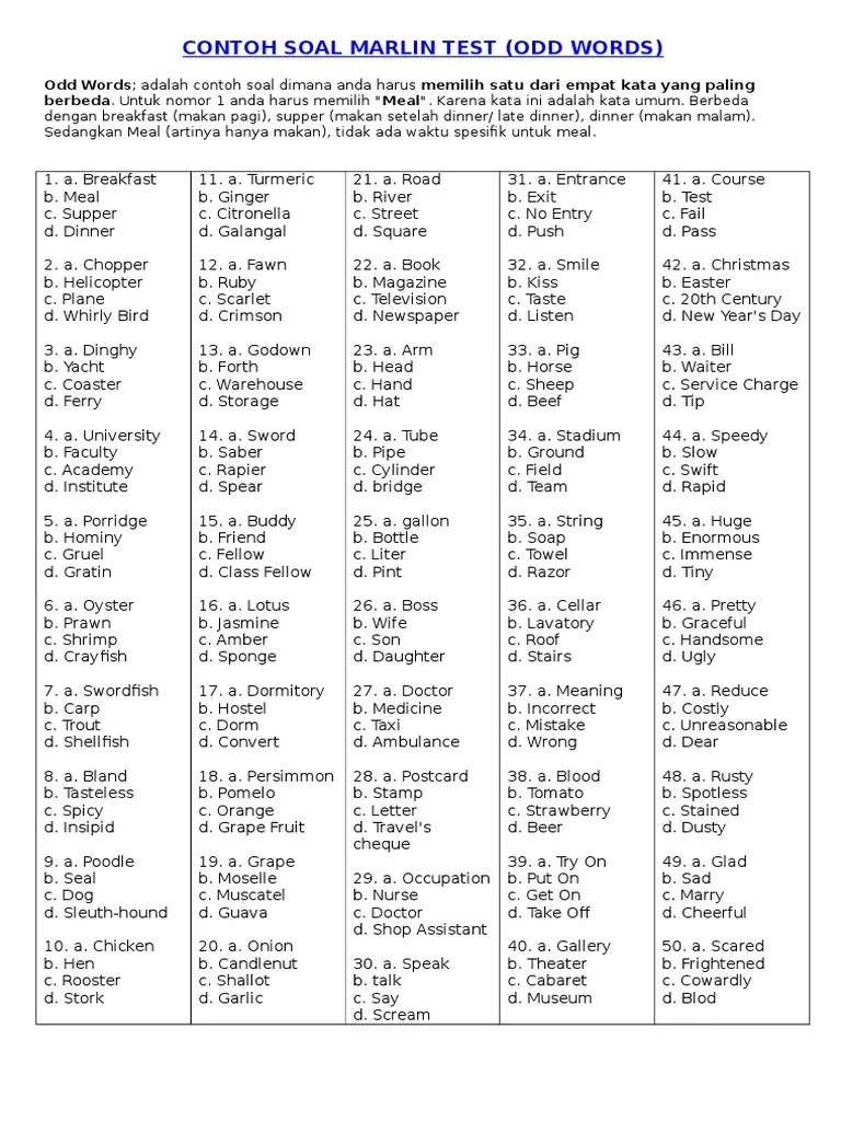 Contoh soal marlin test · listening ( 25 soal ) · grammar ( 30 soal ) · vocabulary ( 14 soal ) · time and number ( 5 soal ) · pronunciation ( 1 soal/ . Sistem aplikasi ujian online cat web tes computer komputer plus soal essay. Contoh gambar untuk soal ini adalah: Contoh soal marlin test yang menyediakan 20 pertanyaan dengan maksimum waktu 15 menit. Marlin test preparation ( mt ).